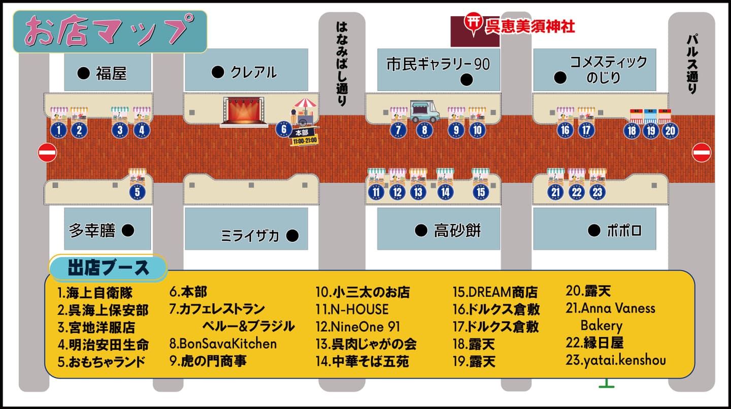 ② 各ブースの出店場所は下記のマップを確認ください。スペース(間口3m奥行2m)になります。